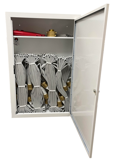 - Models NYCLSCR and NYCLSCSM Lobby Storage Cabinets come with a solid door and cylinder lock, a shelf, and are sized to contain NYCLSCEQ comprised of 375' of 1.5" hose furnished in (7) 50' lengths and (1) 25' length, (3) open nozzles, (2) 1.5" spanner wrenches, (2) 2.5" spanner wrenches, and (2) 2.5" x 1.5" non-swivel reducing couplings. *NYCLSCEQ is sold separately